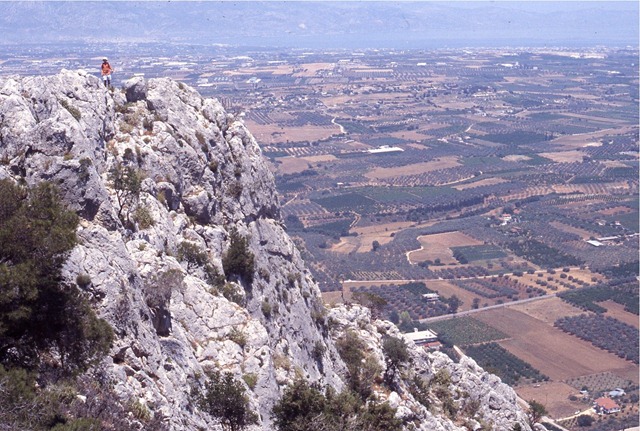I was twice dragged up to the top of Mt. Oneion, the range that marks the visual southern boundary of the Isthmus. While Dimitri Nakassis and I were walking survey teams around the plain of the Isthmus in 2000 and 2001, Bill Caraher was driving all over the eastern Corinthia doing “extensive survey” in remote and hard to reach locations. One spectacular discovery Bill made was a set of fortification walls in one of the saddles of Mt. Oneion dating to both the late Classical and Venetian periods. He published these (with T. Gregory) as Caraher, W. R. and T. E. Gregory. “Fortifications of Mount Oneion, Corinthia,” Hesperia 75 (2006), 327-356. The abstract to their article: