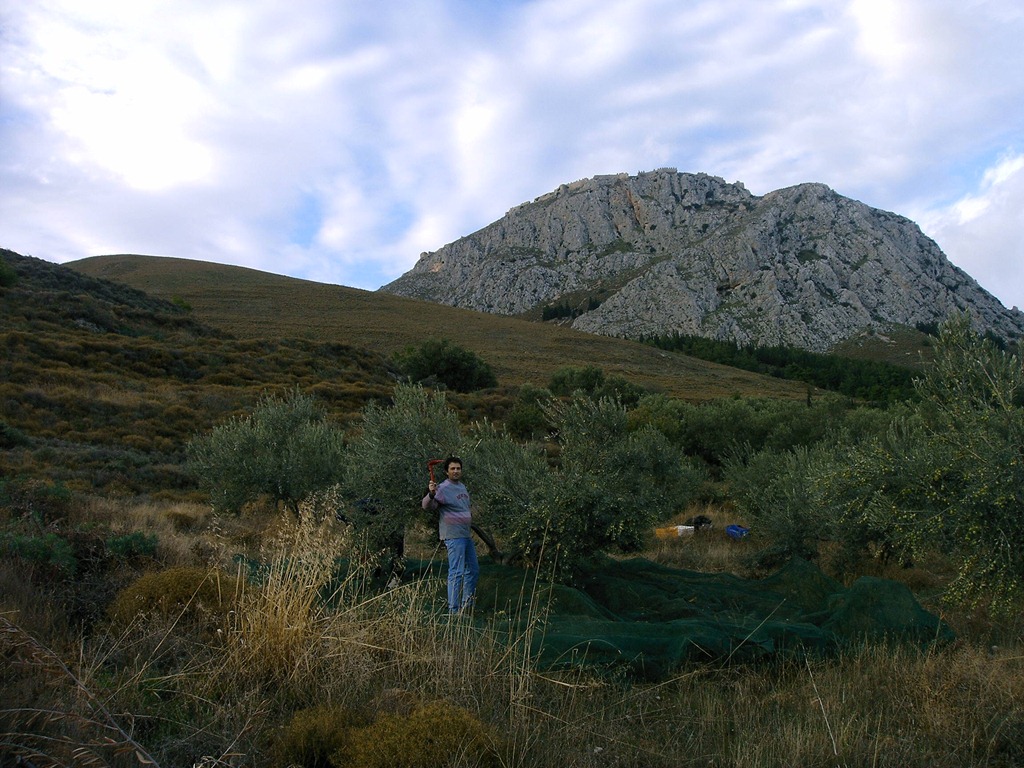 Harvesting olives with Nikos Gdysis of Gemelos Taverna, November 16, 2004. Photos by D. Pettegrew.