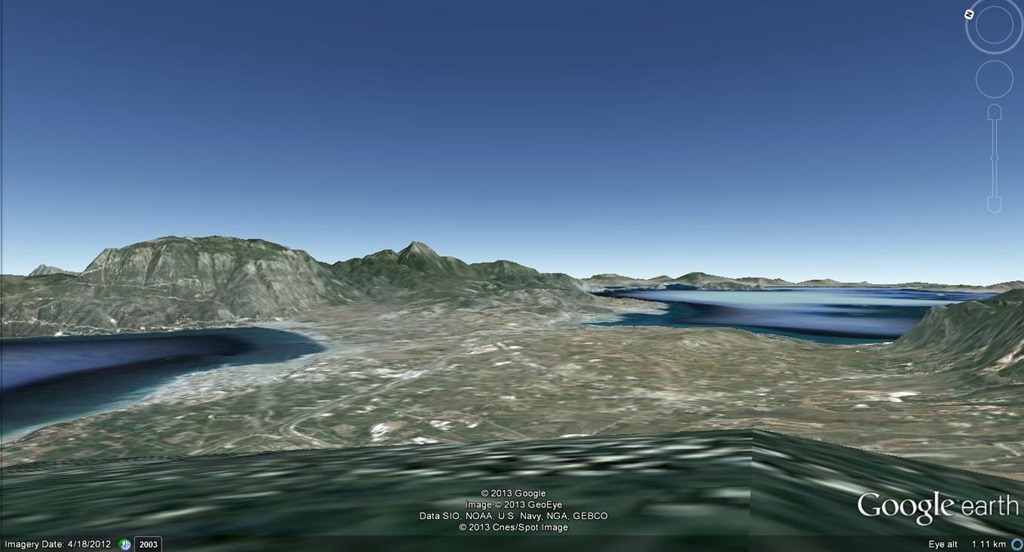 I wanted to see what the Isthmus of Corinth had in common with the other land forms identified as isthmuses from the archaic-early Hellenistic age and so I spent some time last month zooming (via Google Earth) around the Mediterranean and Black Sea, looking at landforms identified as isthmuses. More images forthcoming via this website, but for now, here is how the Isthmus of Corinth appears in Google earth from Acrocorinth.