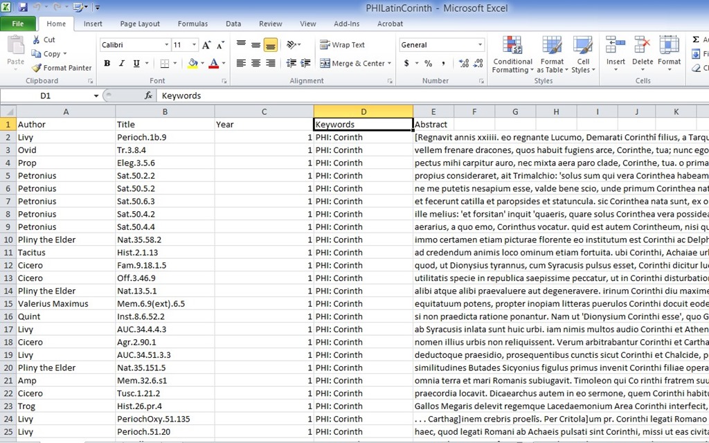 If there are additional Latin keywords you’d like to include (e.g., Cenchreae, Lechaeum, Isthm-), just repeat this step and dump into Excel.
