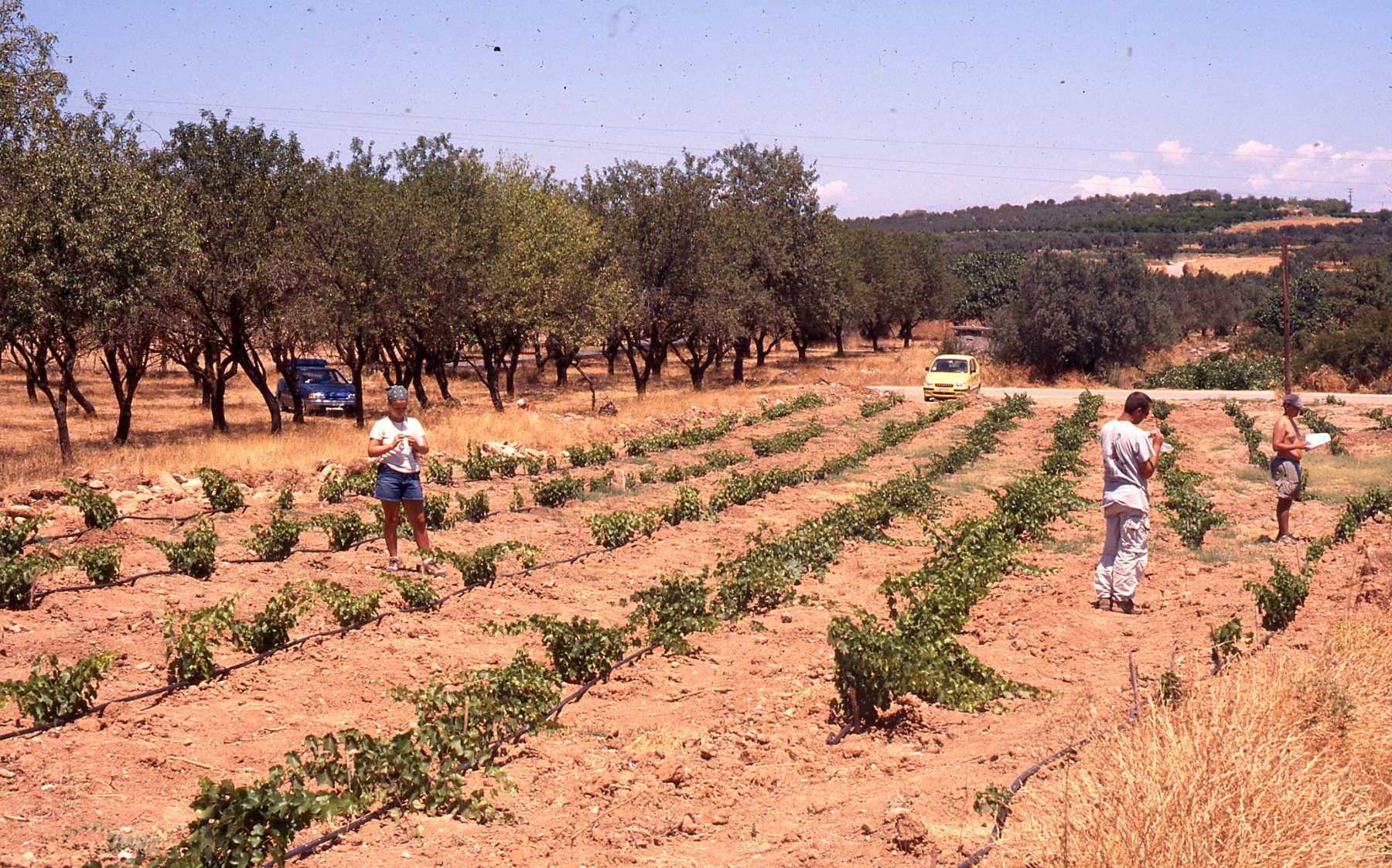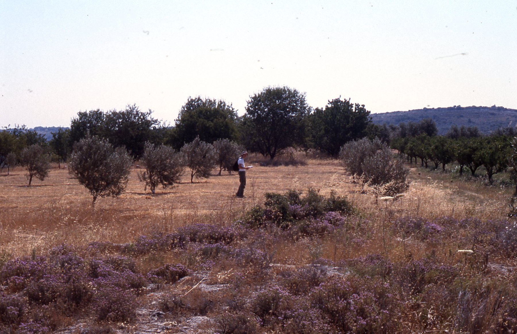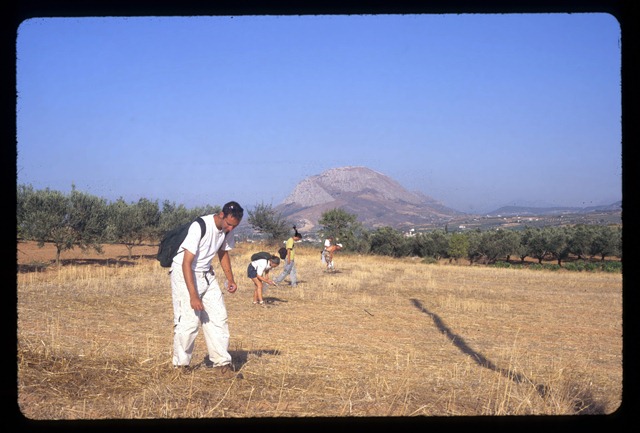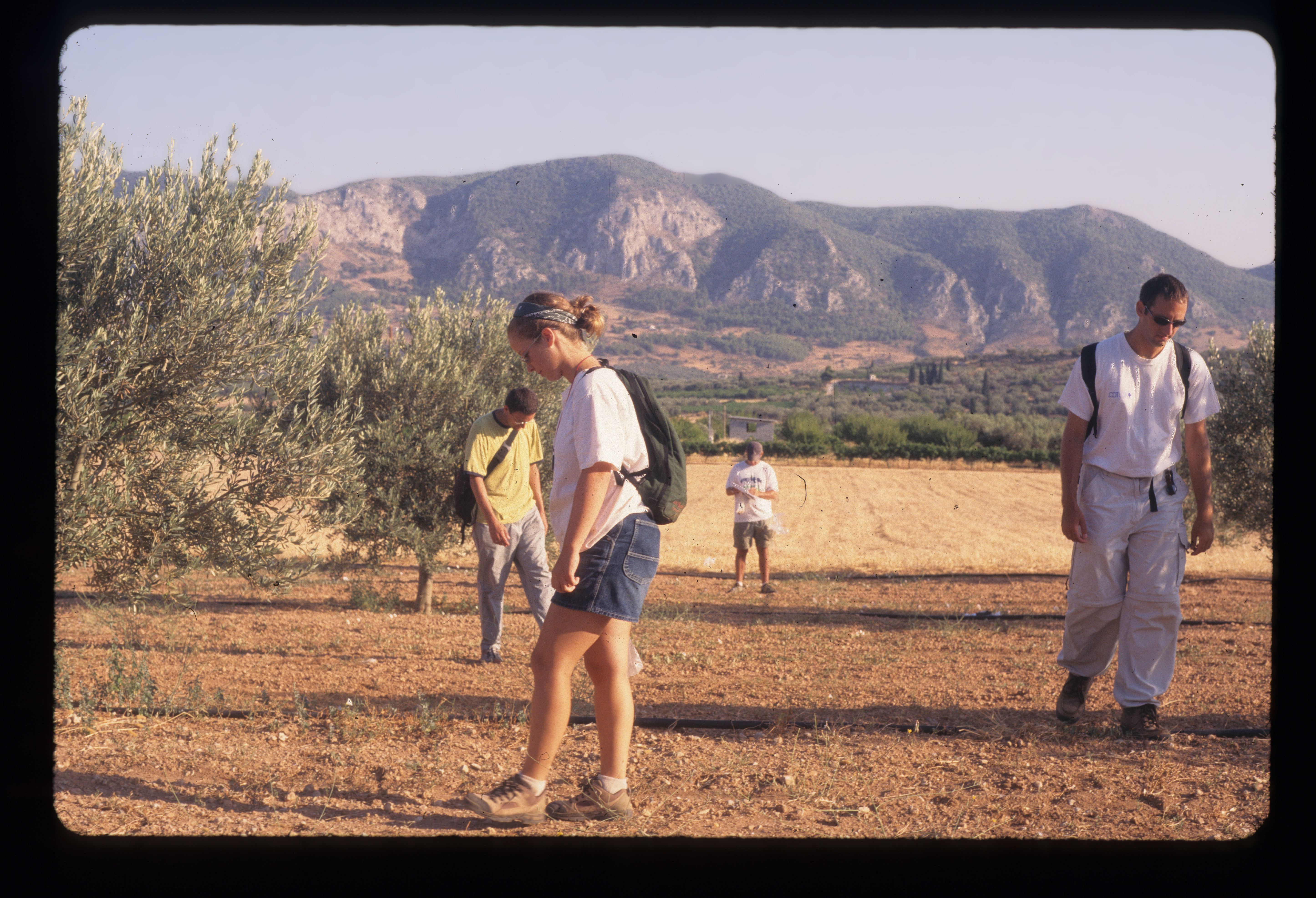 Fieldwalkers conduct survey on the Isthmus of Corinth in 2000 as part of the Eastern Korinthia Archaeological Survey