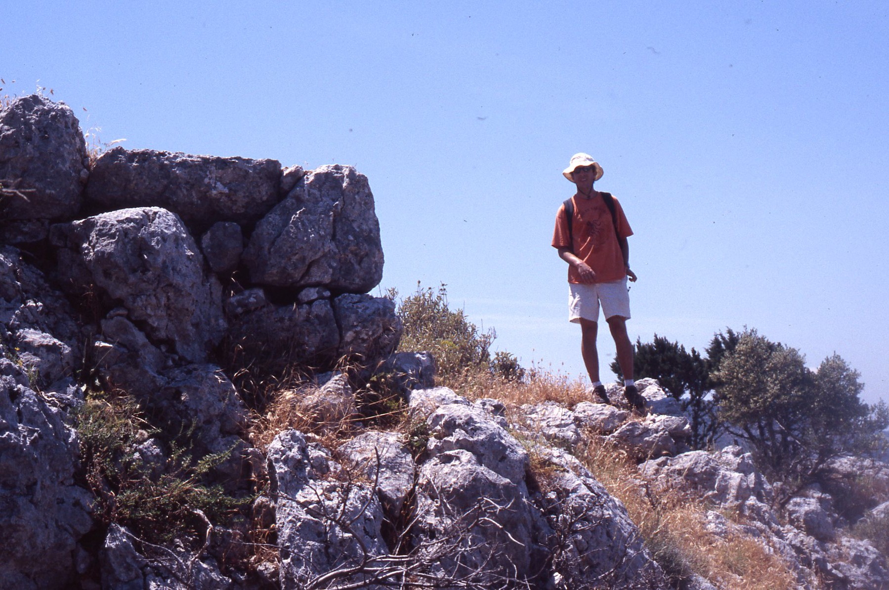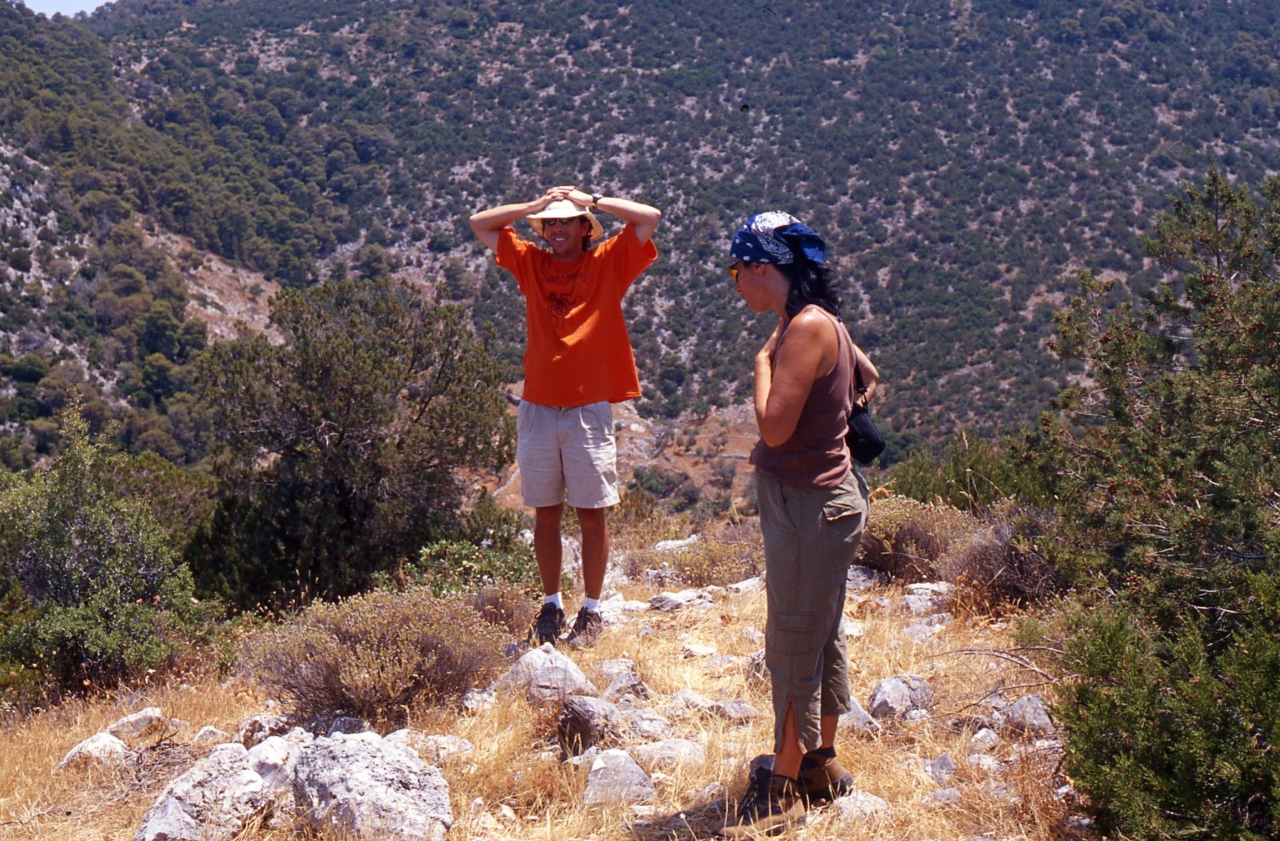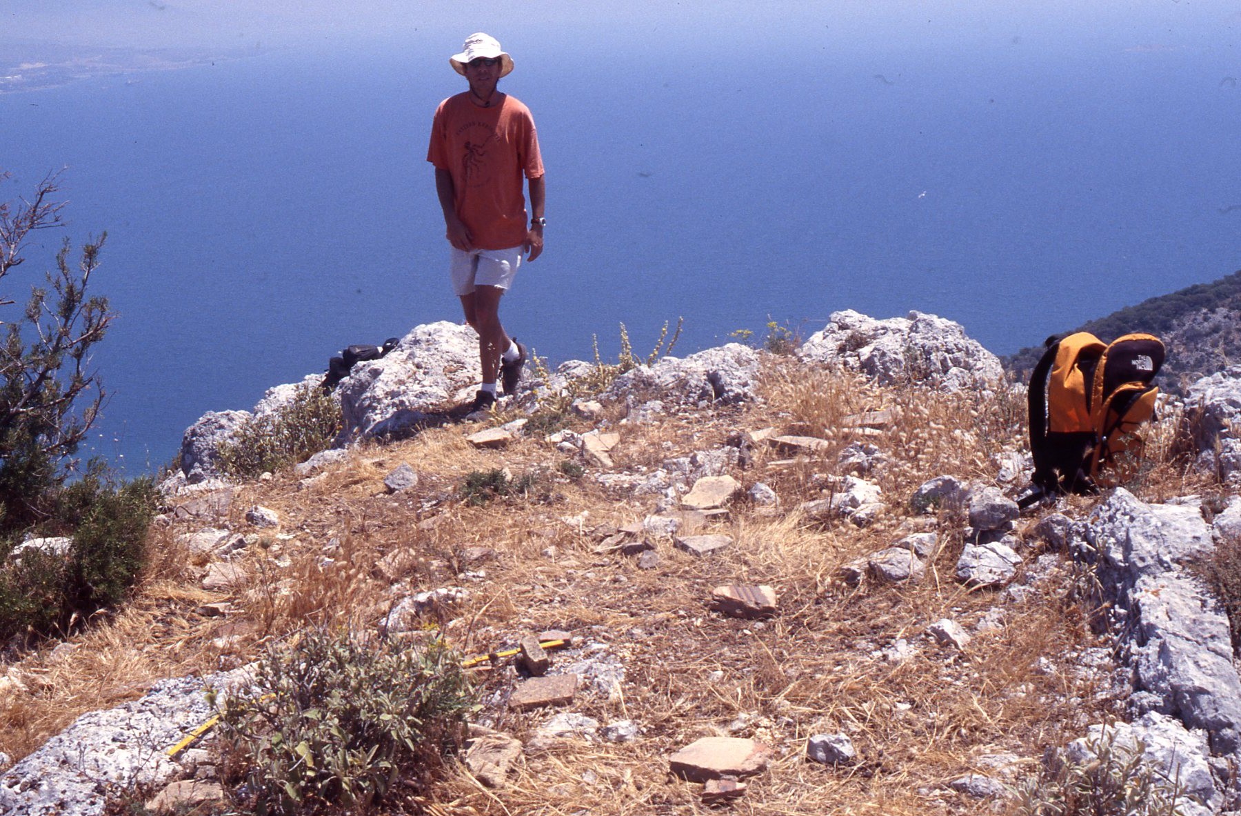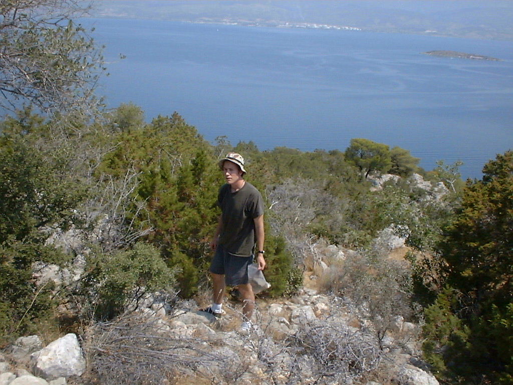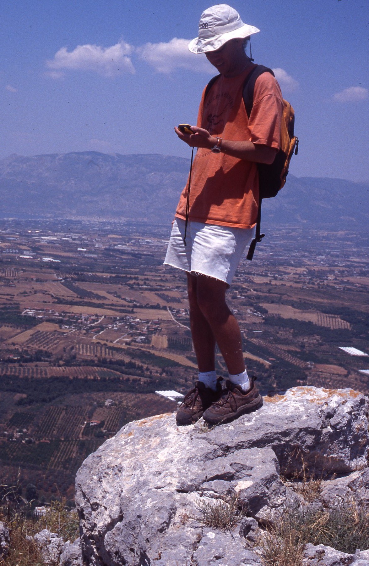 D. Pettegrew surveying at Ano Vayia above Saronic Gulf (2003)