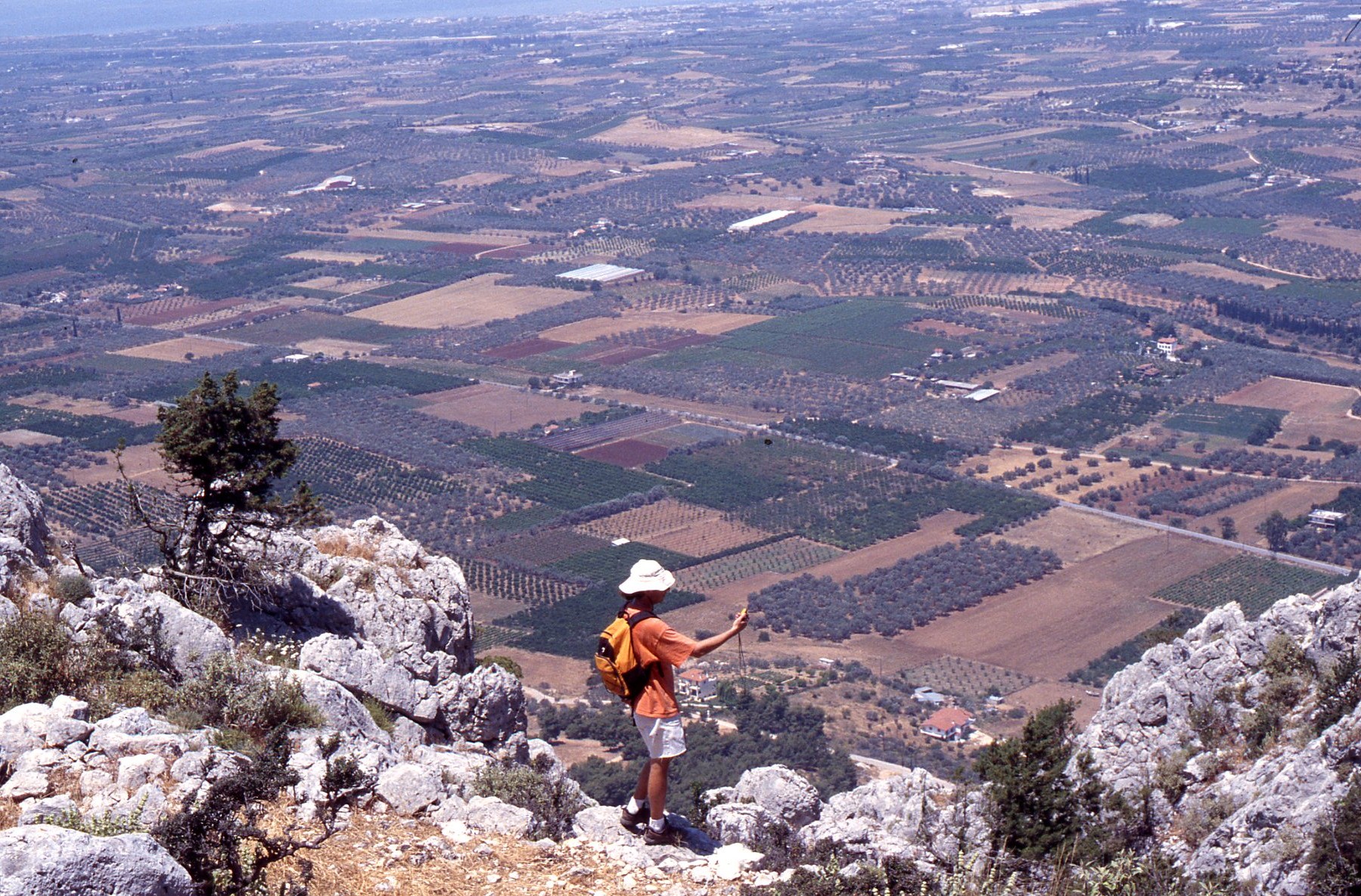 Field team at Vigla overlooking lowland pass to southern Corinthia