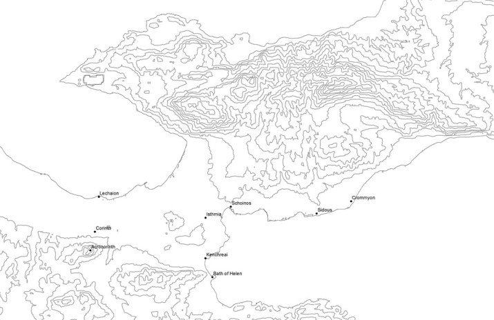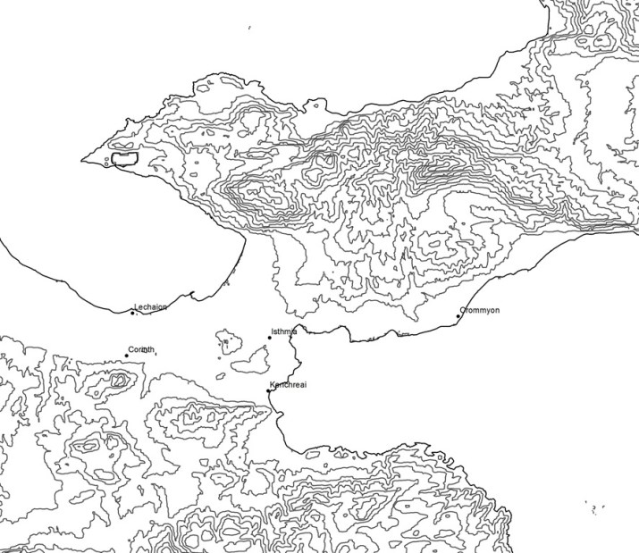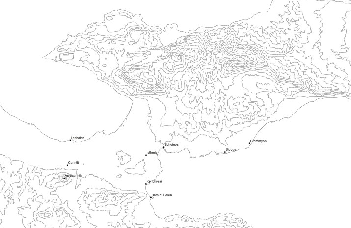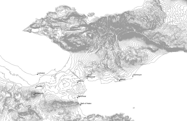 Ancient and Modern Corinthian Sites (20 m contours, SRTM data)