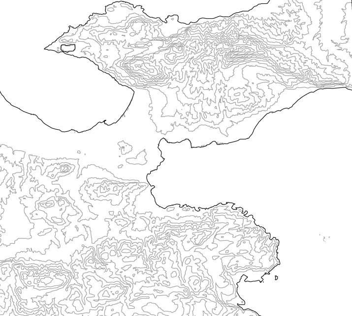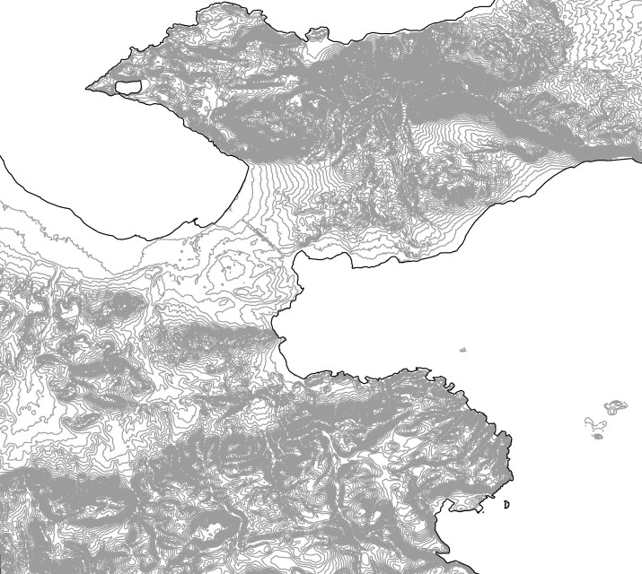 At the bottom of this page you will find links to downloadable 20 m. and 100 m. contours for the Corinthia and central and southern Greece. The process of generating these contours were discussed through two posts: